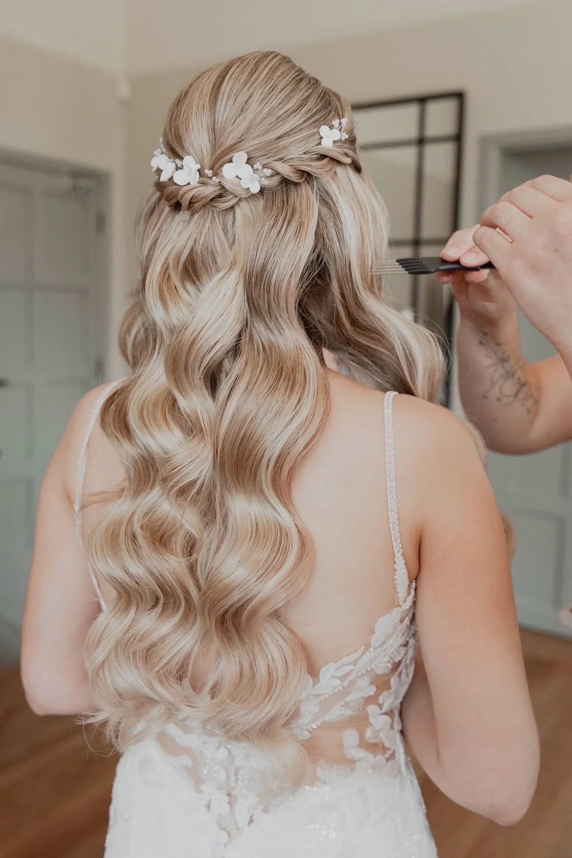 I’m a wife and a mother to three wonderful children. I am an award winning bridal hair stylist based in Oxfordshire, specialising in timeless elegance for the modern bride. My love for bridal hair began at my sisters destination wedding, it was my first experience styling hair for a wedding. I saw first hand how a beautiful hairstyle can make a person feel truly special on one of the biggest days of their life. That feeling has been my inspiration ever since. This experience sparked a passion in me that has only grown stronger. Since then, I have had the privilege of helping countless brides feel confident and radiant on their big day.